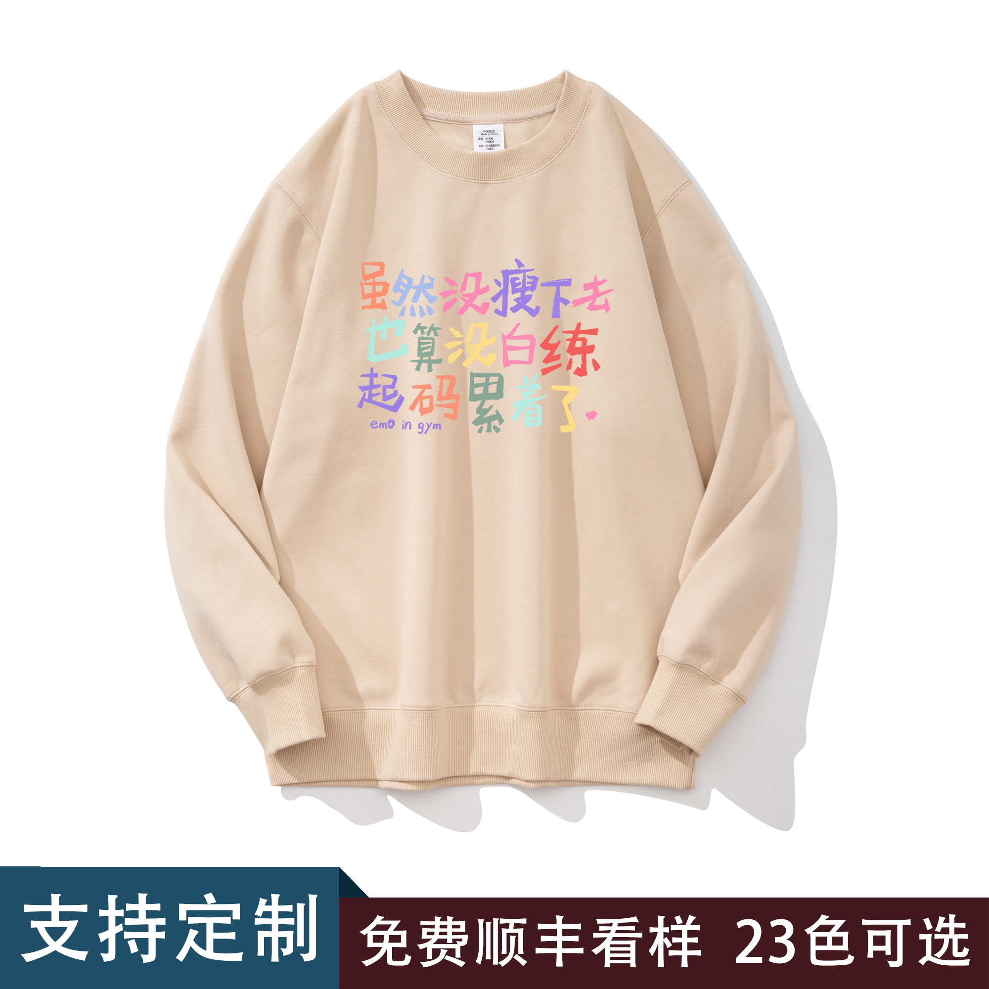 虽然没瘦下去 趣味搞笑减肥个性秋冬加绒圆领卫衣男日常宽松休闲