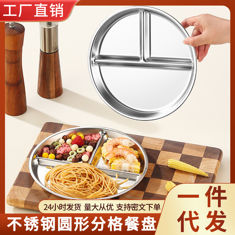 您的位置: 食品级不锈钢减脂减肥餐盘分格圆盘专用饭盘儿童学生饭菜盘子