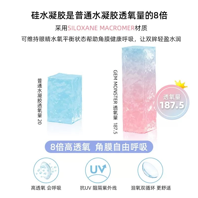 Gem Monster琦洛丽美瞳月抛硅水凝胶小直径彩色隐形眼镜自然款