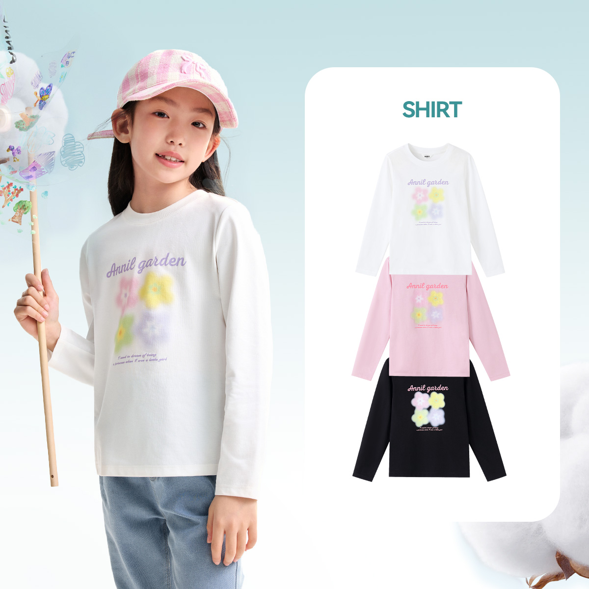 > 【全棉暖暖T恤】安奈儿童装女童圆领长袖T恤针织2025秋冬打底外穿