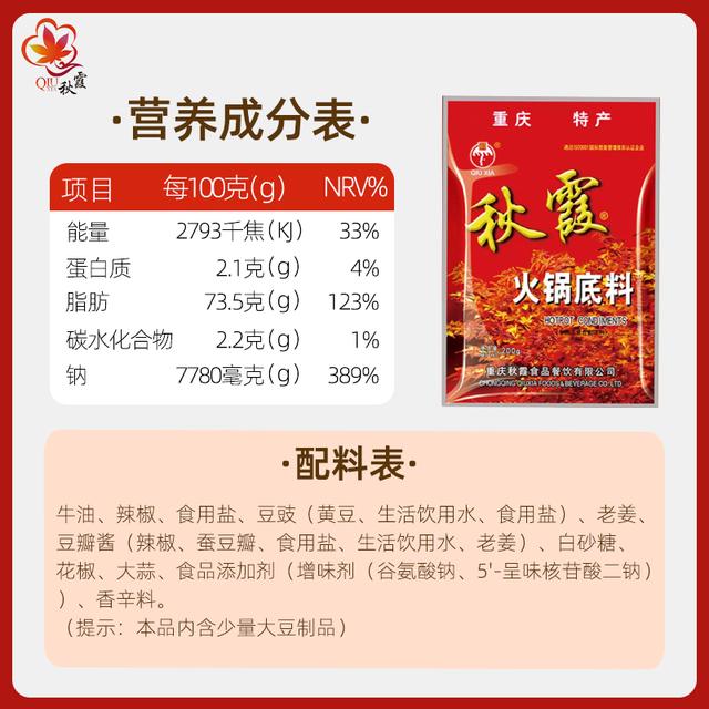 您的位置: 重庆老火锅底料200g纯牛油麻辣调料家用正宗四川厨房红汤锅冒