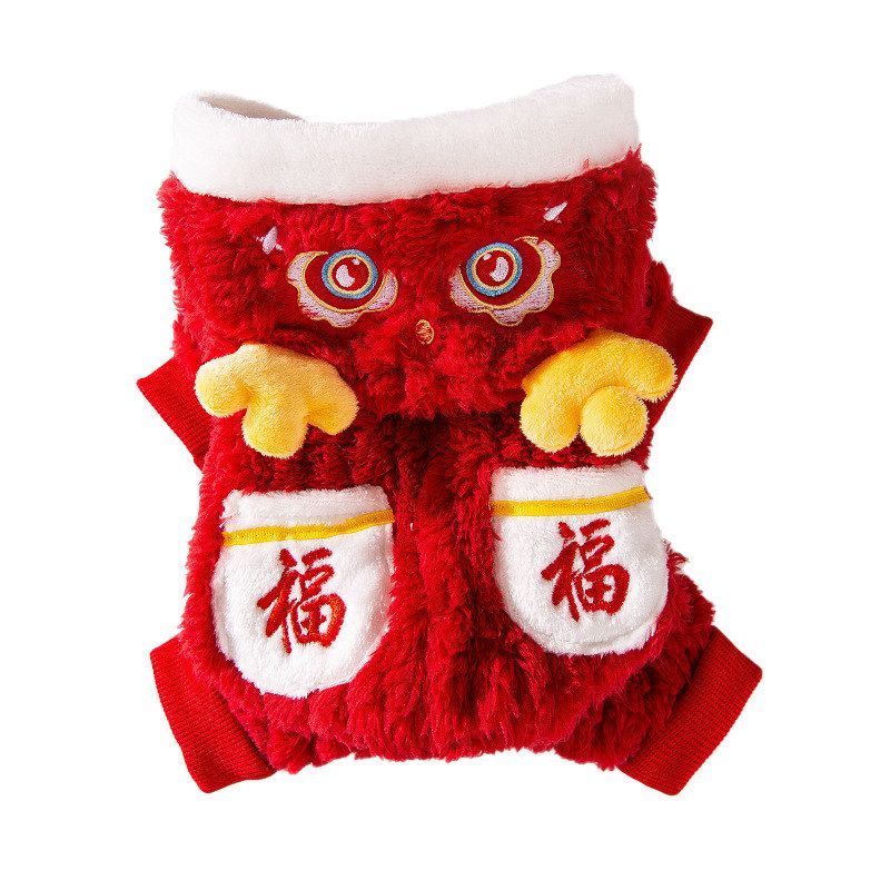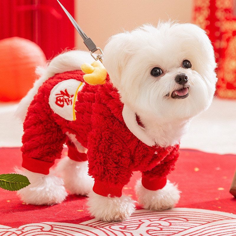 秋冬季狗狗衣服新年福到祥瑞到四脚绒衣加厚保暖泰迪小型犬猫衣服
