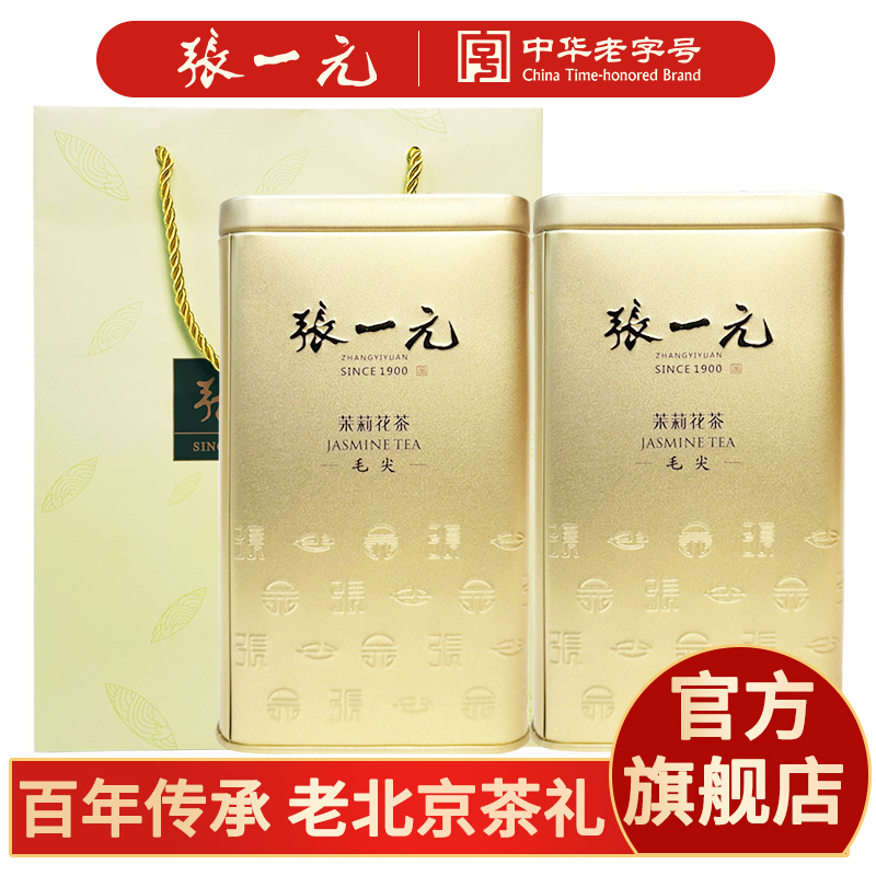 > 张一元茶叶茉莉花茶茉莉毛尖新茶浓香型春茶伴手礼特种400g金罐装