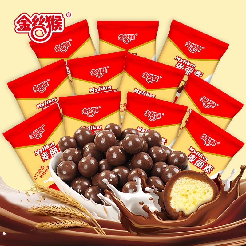 您的位置: 金丝猴麦丽素15g*20袋巧克力豆童年味道经典袋装零食代可可脂正版