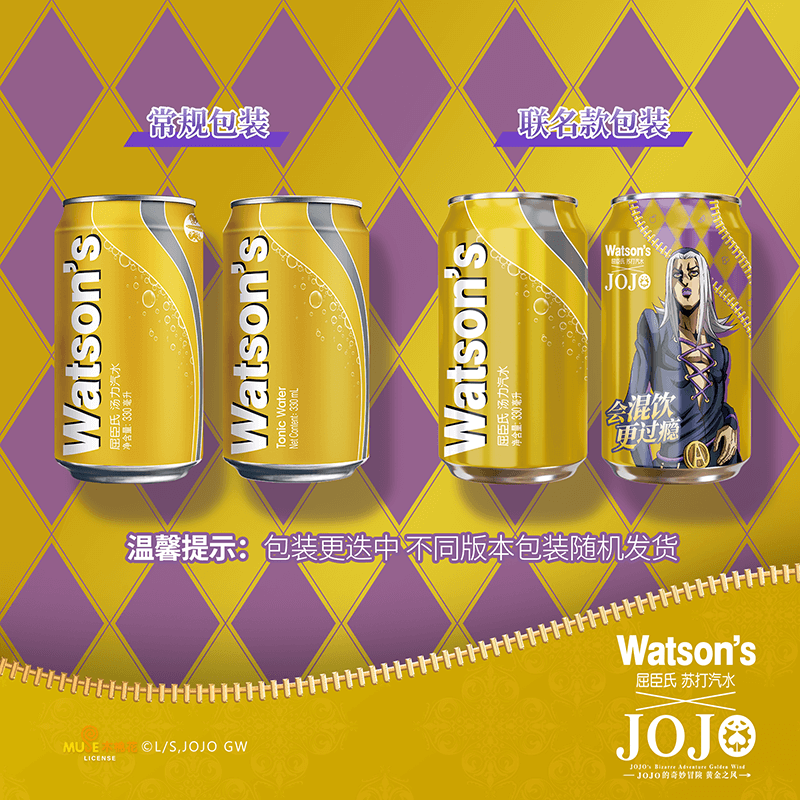 > 屈臣氏汤力水金汤力汽水苏打调酒碳酸饮料JOJO联名整箱新老包装