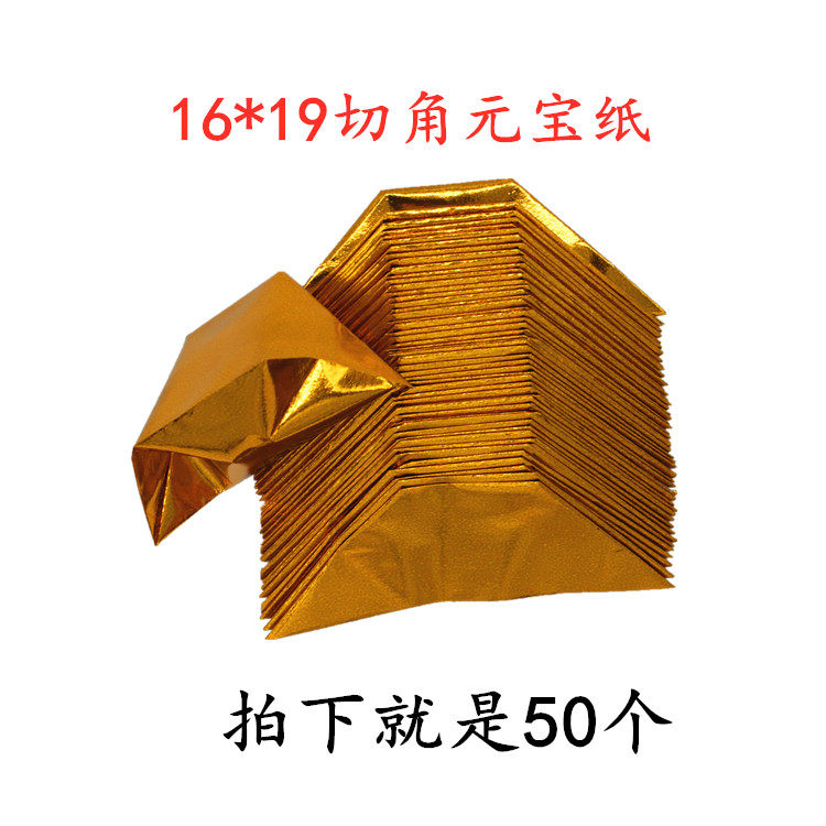 您的位置: 超大号半成品金元宝16*19烧纸祭祀用品手工折纸叠金纸元宝教用品