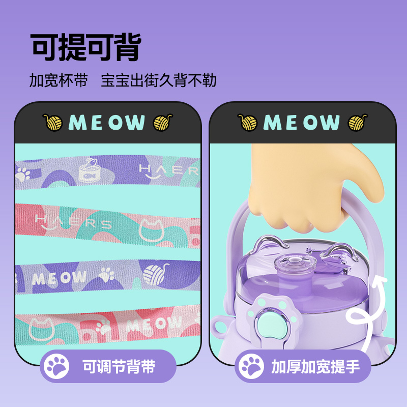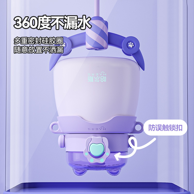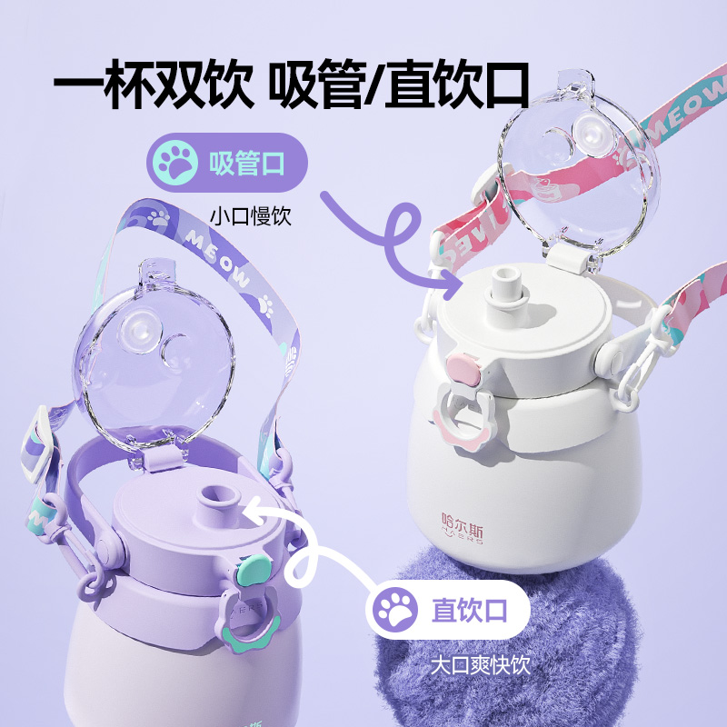 哈尔斯儿童保温杯女生高颜值双饮学生上学专用杯子女吸管水杯