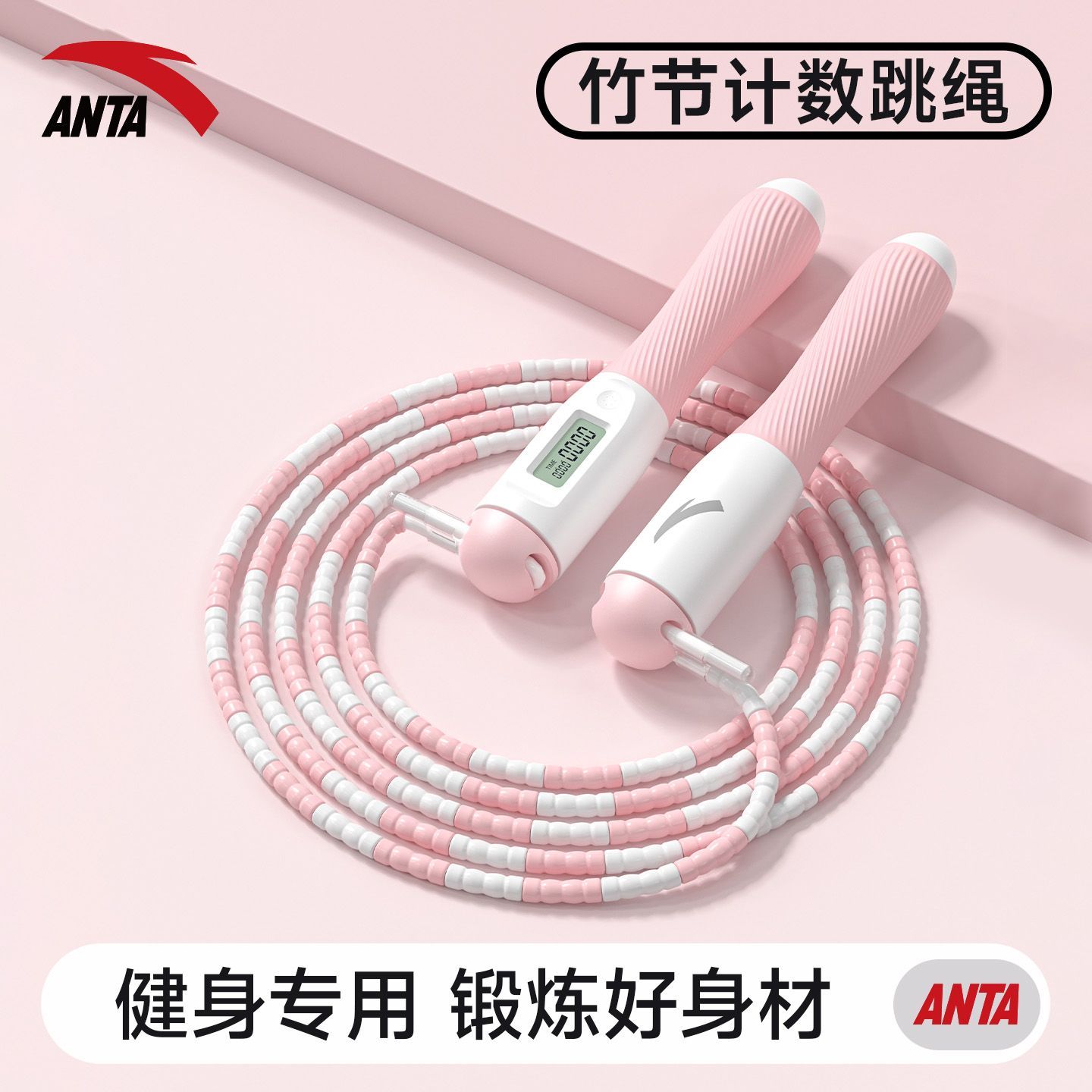安踏计数跳绳计数竹节可调节成年人学生跳绳中考专用健身减肥训练