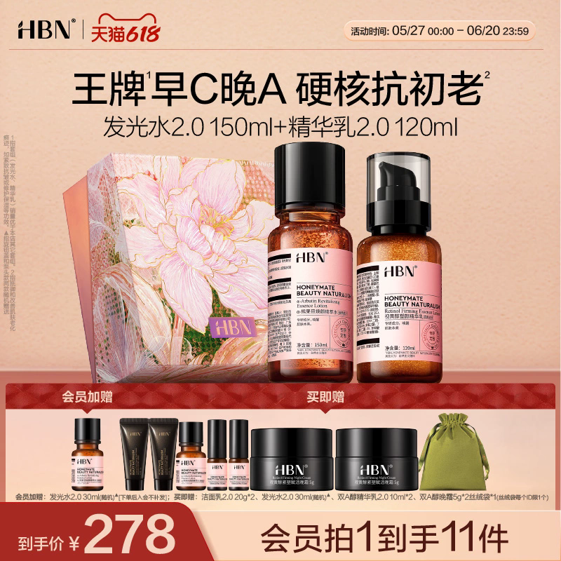 > 【38立即抢购】HBN早C晚A水乳套装提亮去黄补水保湿淡纹紧致抗皱