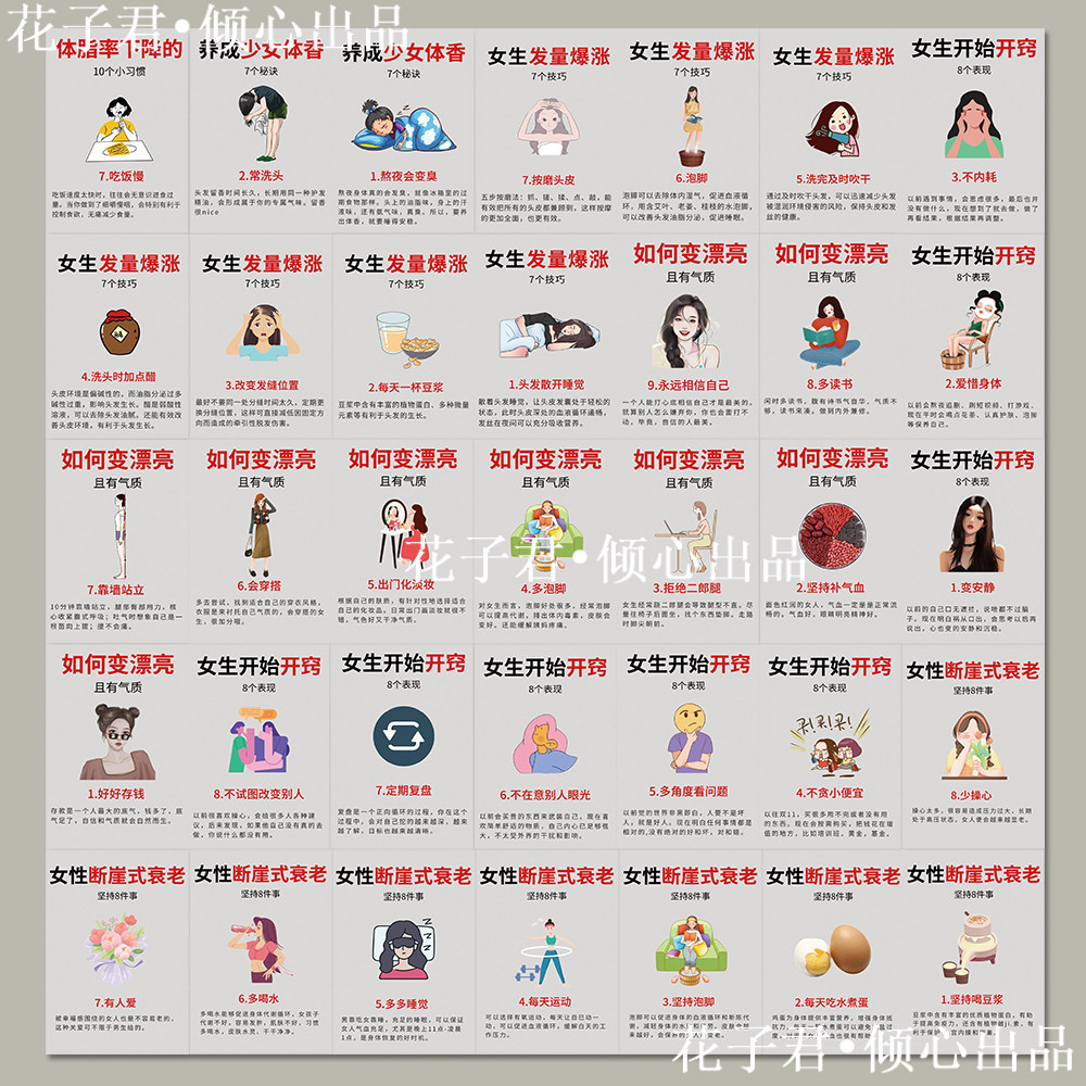 82张女性变美计划贴纸减肥抗老秘诀知识科普小tips手账笔记本贴画