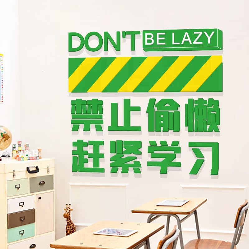 您的位置: 健身房减肥创意背景墙面装饰禁止偷懒学校班级口号激励标语3D墙贴