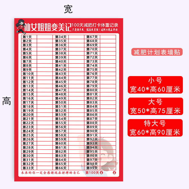 减肥打卡墙贴100天自律减肥计划表健身锻炼减肥瘦身百日计划表