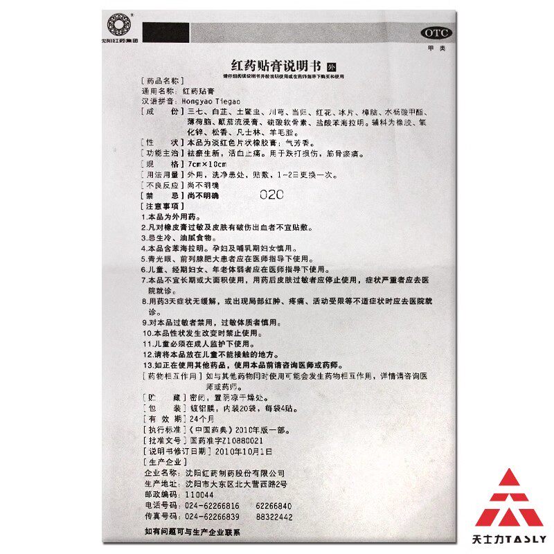 沈阳红药贴膏活血止痛祛瘀生新用于跌打损伤筋骨瘀痛膏药贴