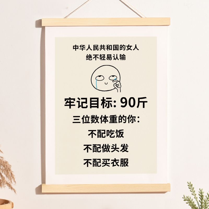 您的位置: 饿了喝水馋了扇嘴字画挂画减肥监督自律神器装饰壁画卧室励志挂轴