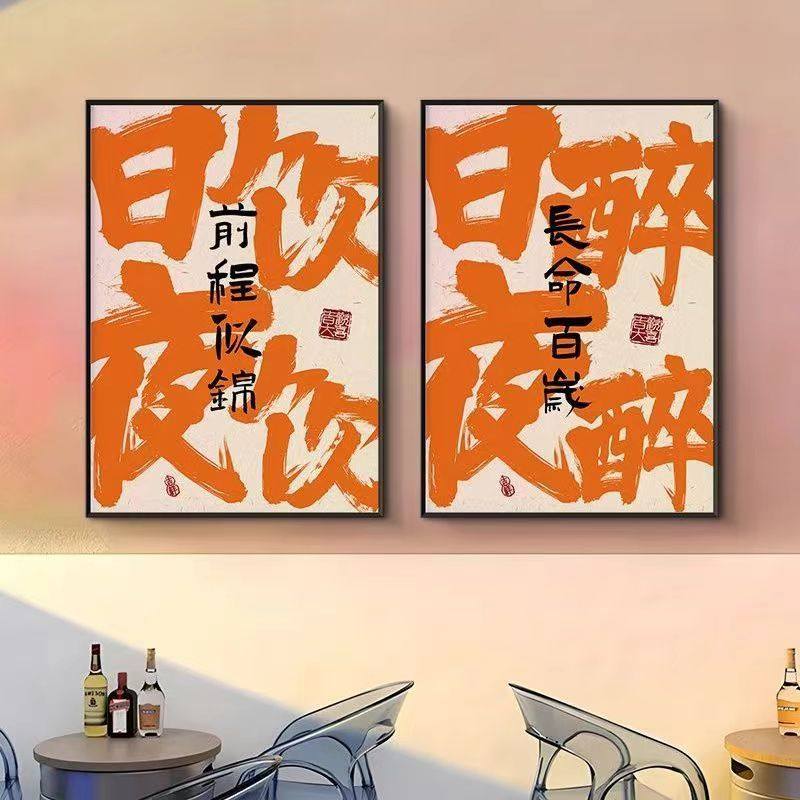 您的位置: 吃饭时间不谈减肥书法文字画国潮餐饮店餐厅装饰画酒馆挂画
