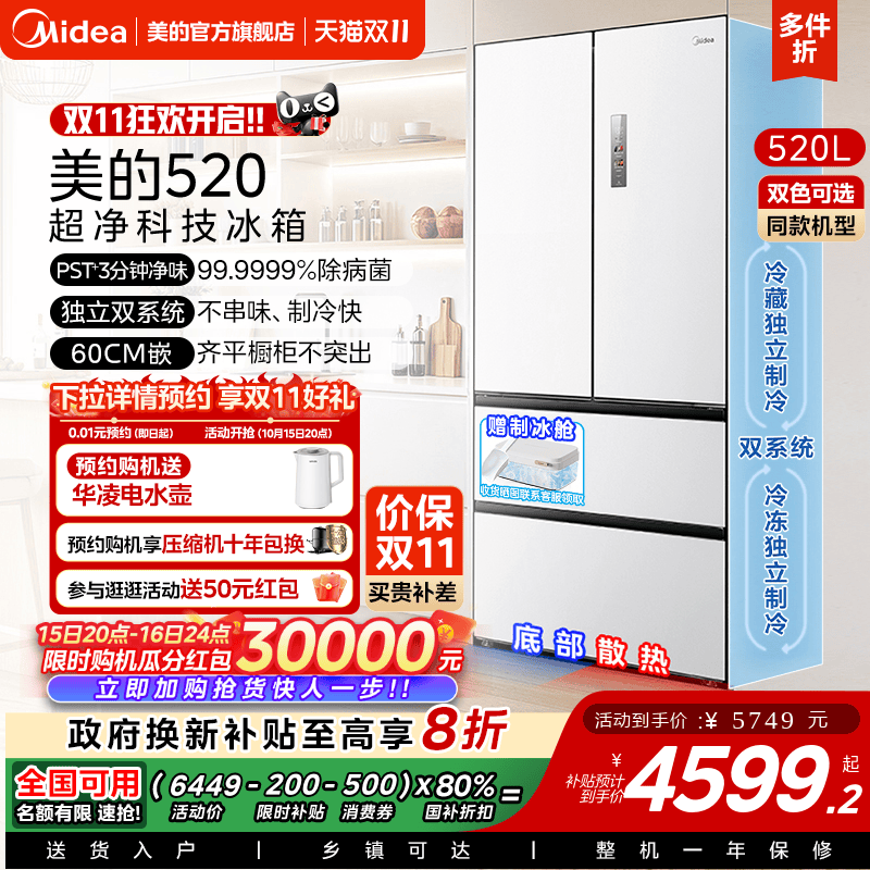 淘宝天猫美的M60小机皇520超薄零嵌入式冰箱家用双系统法式多门四门双开优惠券折扣价格–彩云间