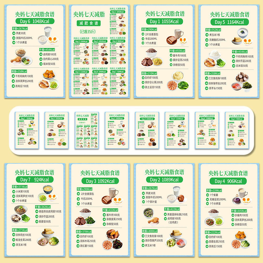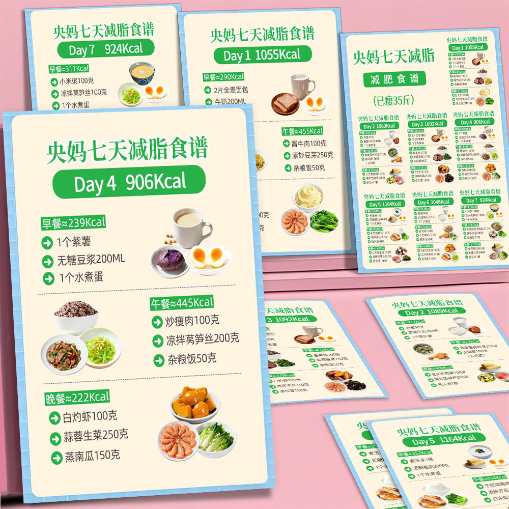 24张央妈七天减脂食谱贴纸懒人减脂仙女减肥不称重食谱创意装饰贴
