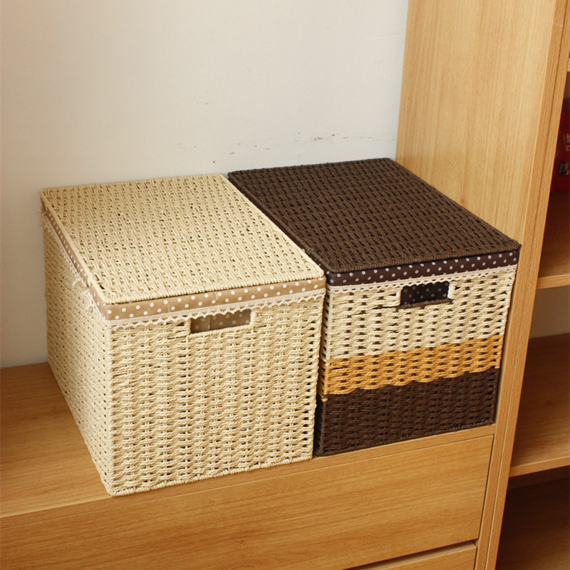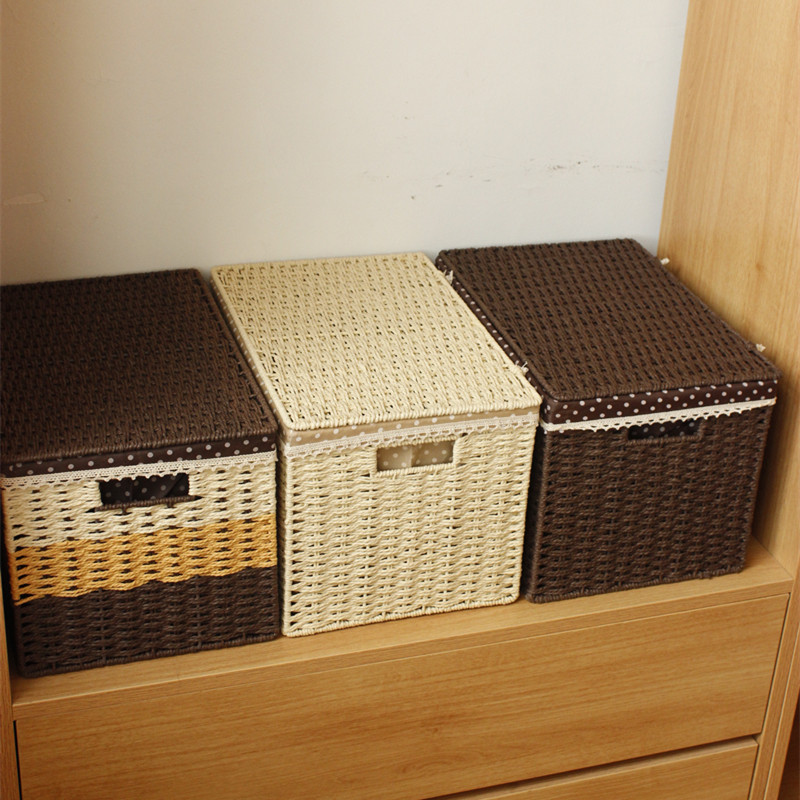 您的位置: 草编收纳筐衣柜衣服储物盒有盖整理箱衣橱特大号仿藤编收纳箱编织