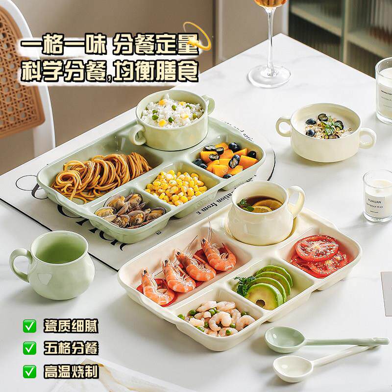 您的位置: 分格餐盘大人减肥专用餐盘儿童减脂月子陶瓷餐具高颜值早餐盘分隔