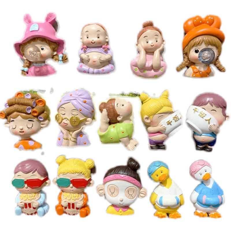 情侣卡通树脂人物可爱干饭人减肥敷面膜看电影立体磁性冰箱贴磁贴