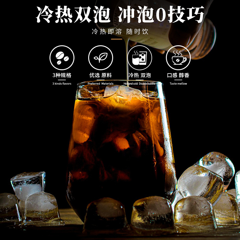 黑咖啡无糖0脂减肥正品提高代谢0卡0反式脂肪酸拿铁特浓蓝山黑咖啡速溶粉条装浓缩多口味冷热双泡提神醒脑浓香型健身轻食代餐饮品
