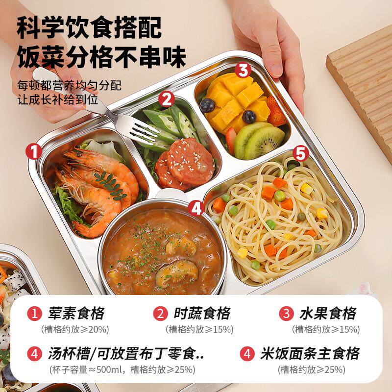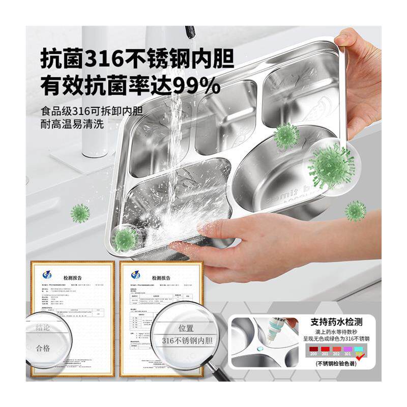 您的位置: 上班族分餐盘大容量不锈钢316家用减肥餐盘分格大人食堂打饭专用