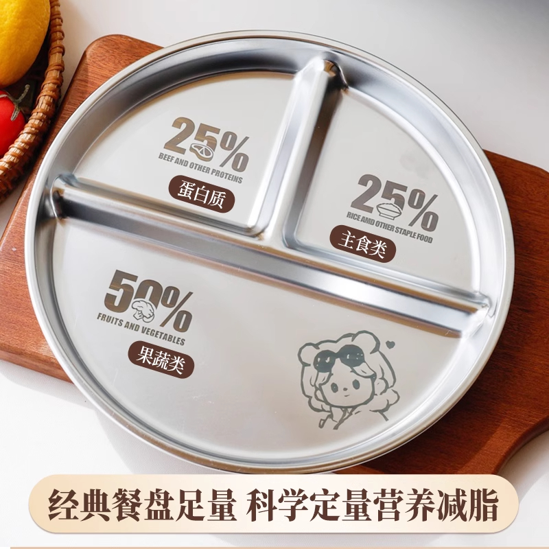您的位置: 减脂餐盘分格减肥专用316不锈钢家用定量碗分餐盘健身三格圆盘