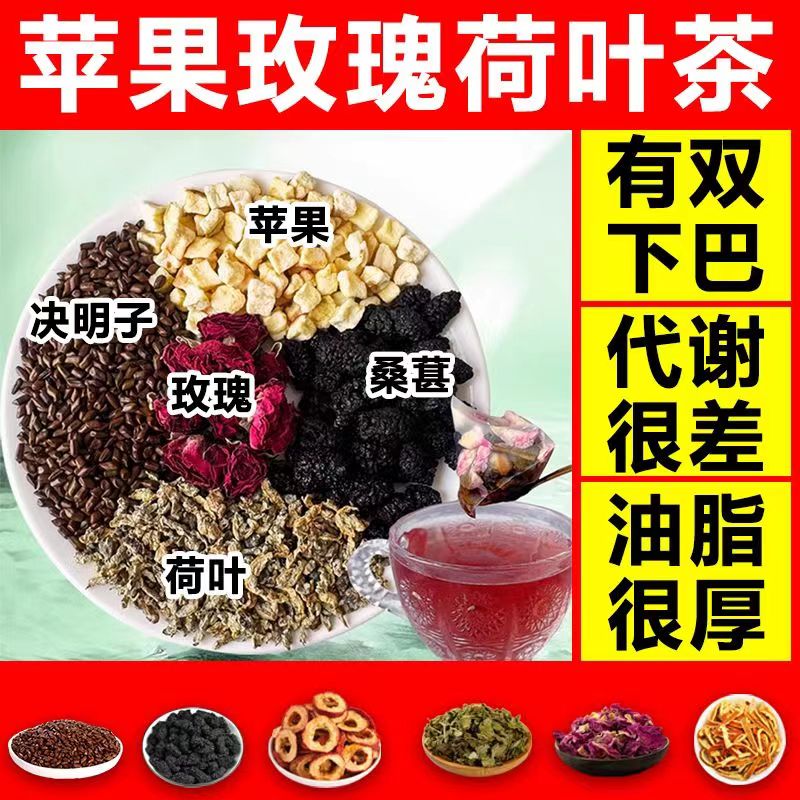 苹果山楂玫瑰荷叶决明子减肥刮油茶去湿气排油全身瘦肚子大肚腩减小腹减脂期果茶包去大肚子瘦身排毒除湿气重减肥女性男士专用神器