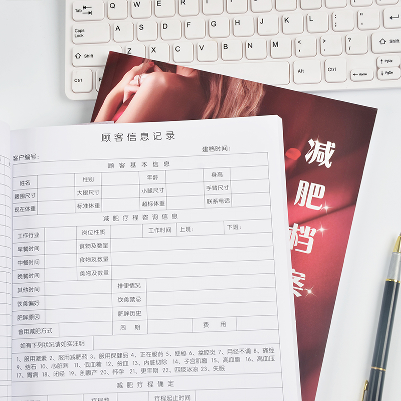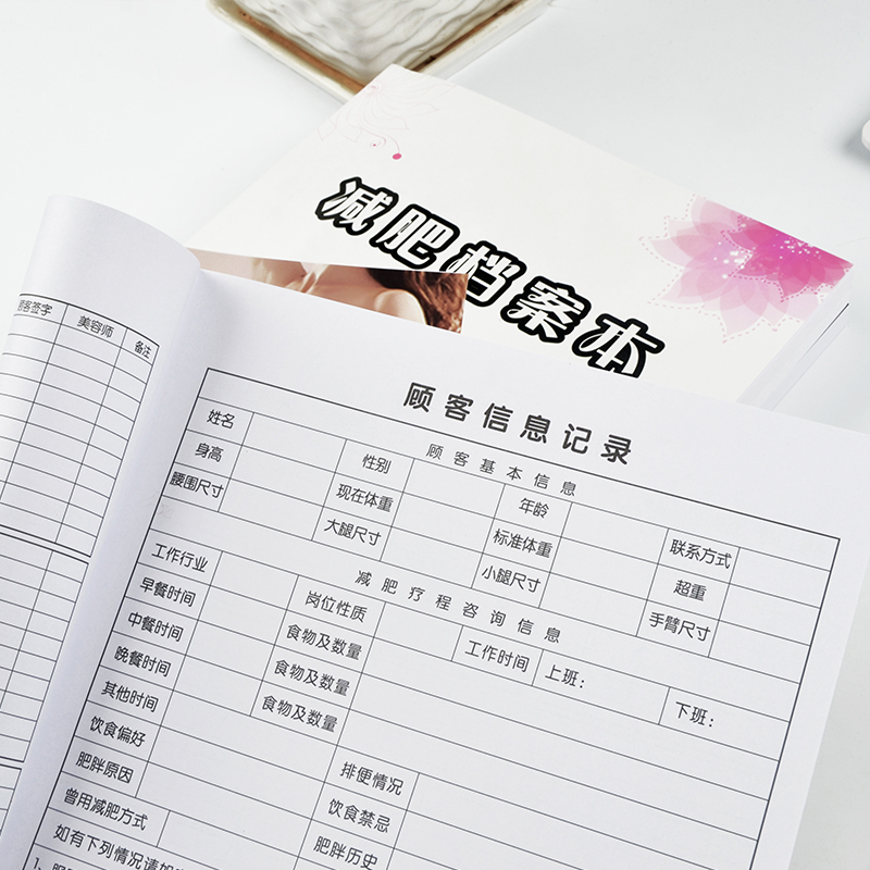 A4减肥档案本时尚美容美体瘦身SPA会所体型管理信息情况会员资料记录本顾客塑身疗程DIY专版内页定制咨询手册