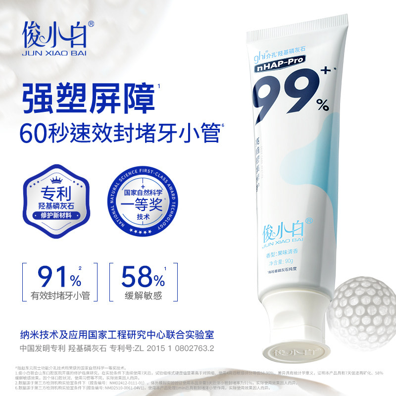 > 俊小白修护牙膏牙釉质羟基磷灰石含氟亮白清新口气