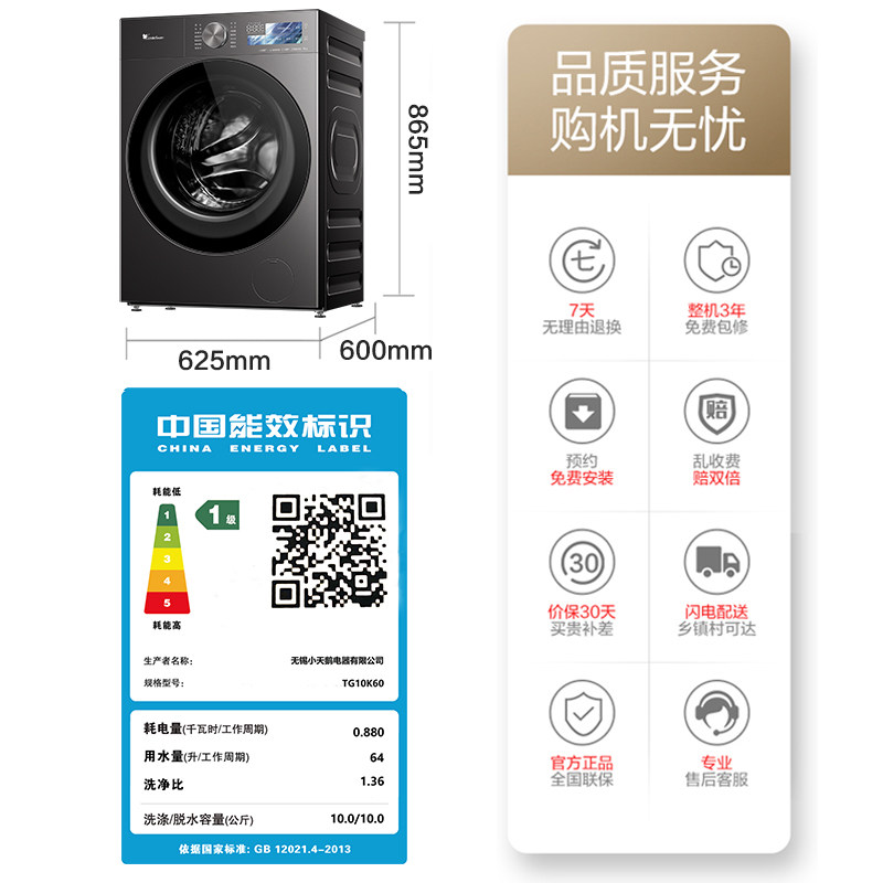 > 【预售】小天鹅小乌梅5.0家用全自动10/12KG滚筒洗衣机K60
