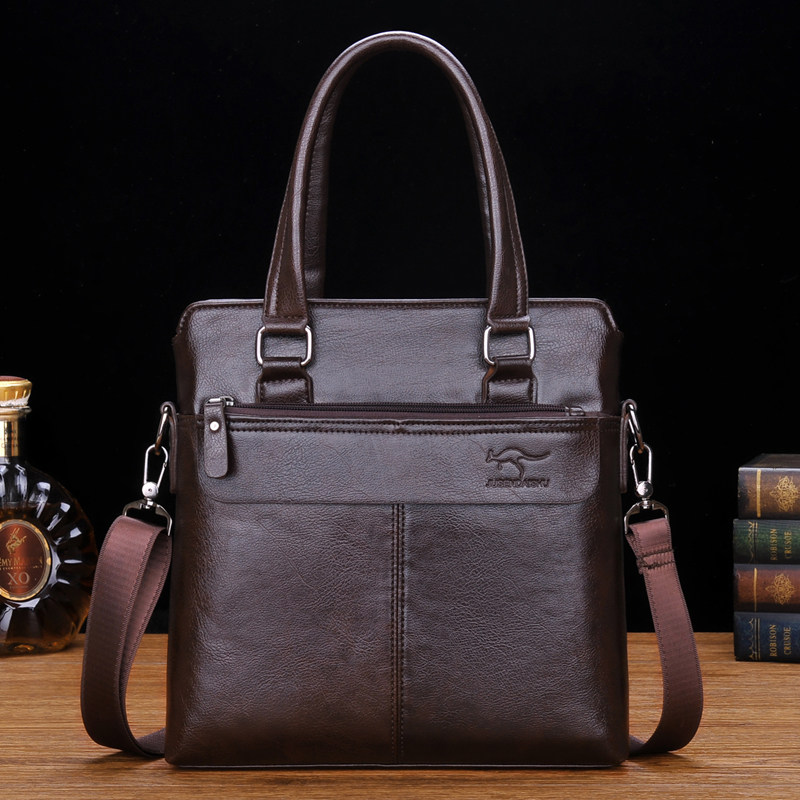 > 巨森袋鼠手提包真皮手拿横款男士包商务牛皮单肩斜挎包休闲公文包