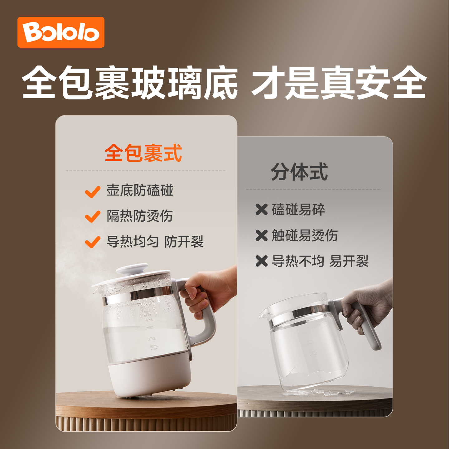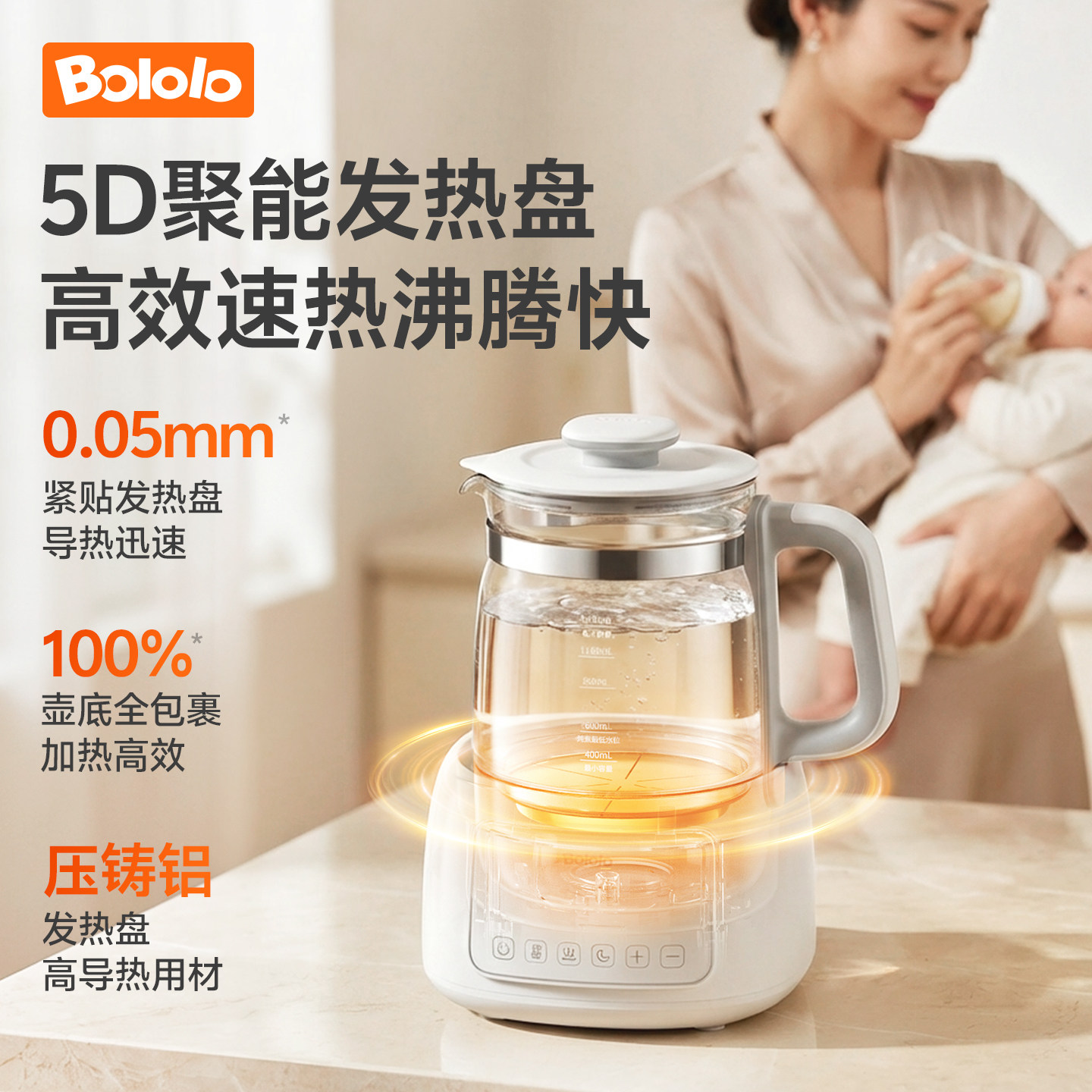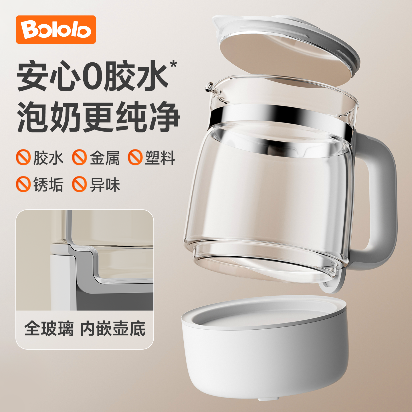 > 波咯咯全玻璃恒温电热水壶养生婴儿冲奶专用家用温奶泡奶调奶器