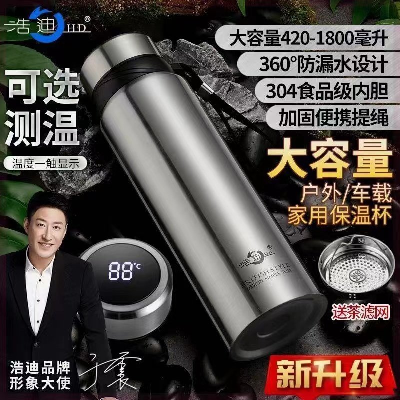 淘宝天猫浩迪智能大容量304不锈钢商务保温杯吊带茶杯简约便携礼品水杯优惠券折扣价格–彩云间