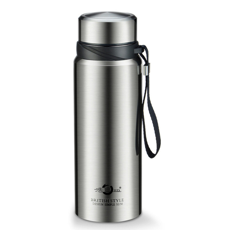 > 浩迪智能大容量304不锈钢商务保温杯吊带茶杯简约便携礼品水杯