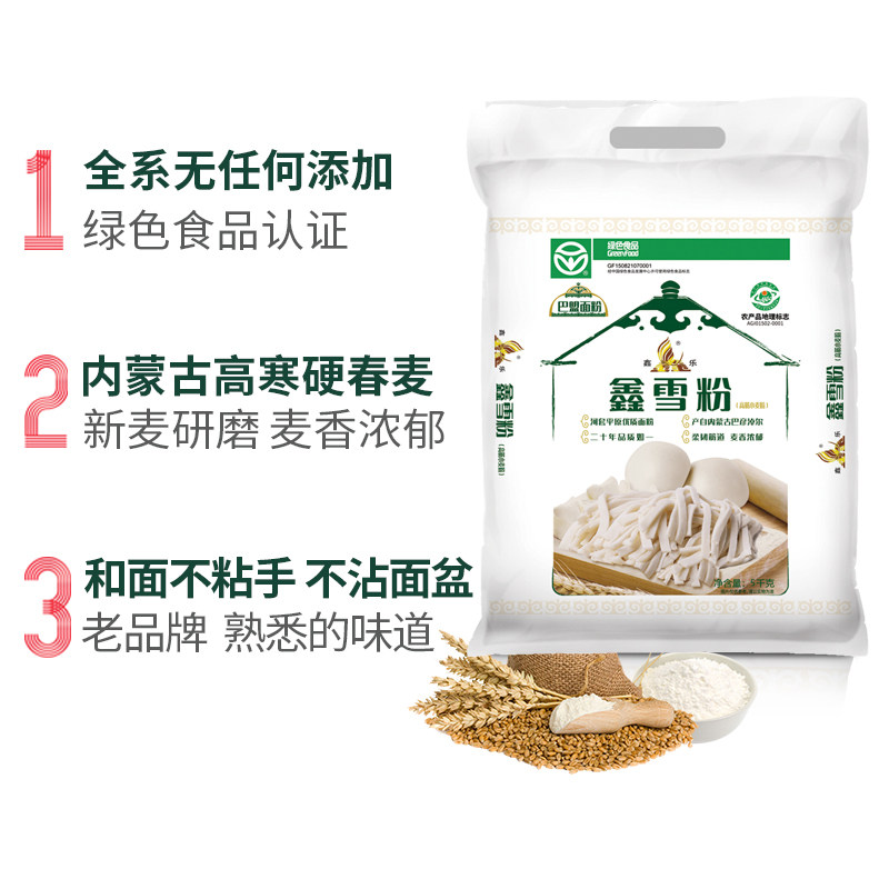 淘宝天猫鑫乐鑫雪粉5kg内蒙古河套平原高筋面粉家用面粉饺子馒头通用面粉优惠券折扣价格–彩云间