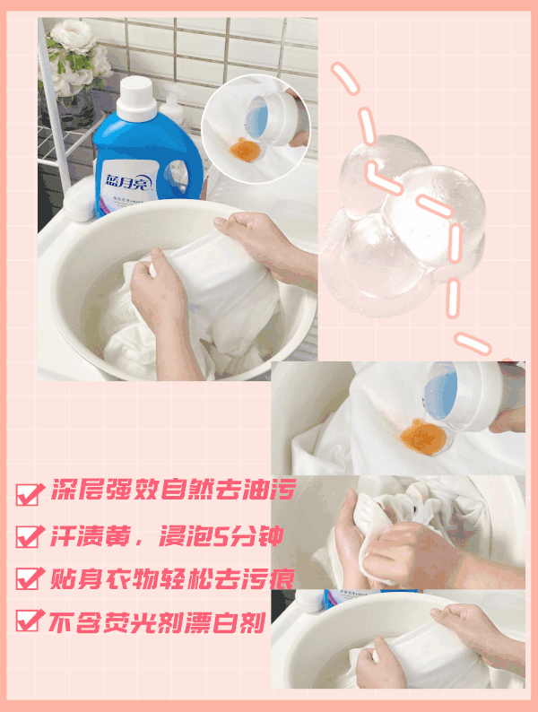 蓝月亮亮白增艳洗衣液的活性物含量高于国家标准,高效洁净因子能深入衣服纤维,去污能力没得说,而且还容易漂洗,也不用担心残留了~