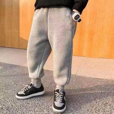 秋冬季儿童加绒保暖休闲裤格子长裤束脚裤子