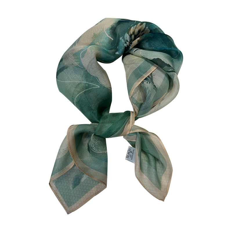 植染薯莨纱丨烟雨映荷桑蚕丝杭州丝绸方巾